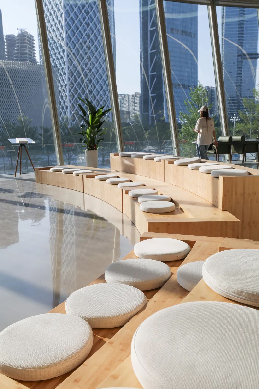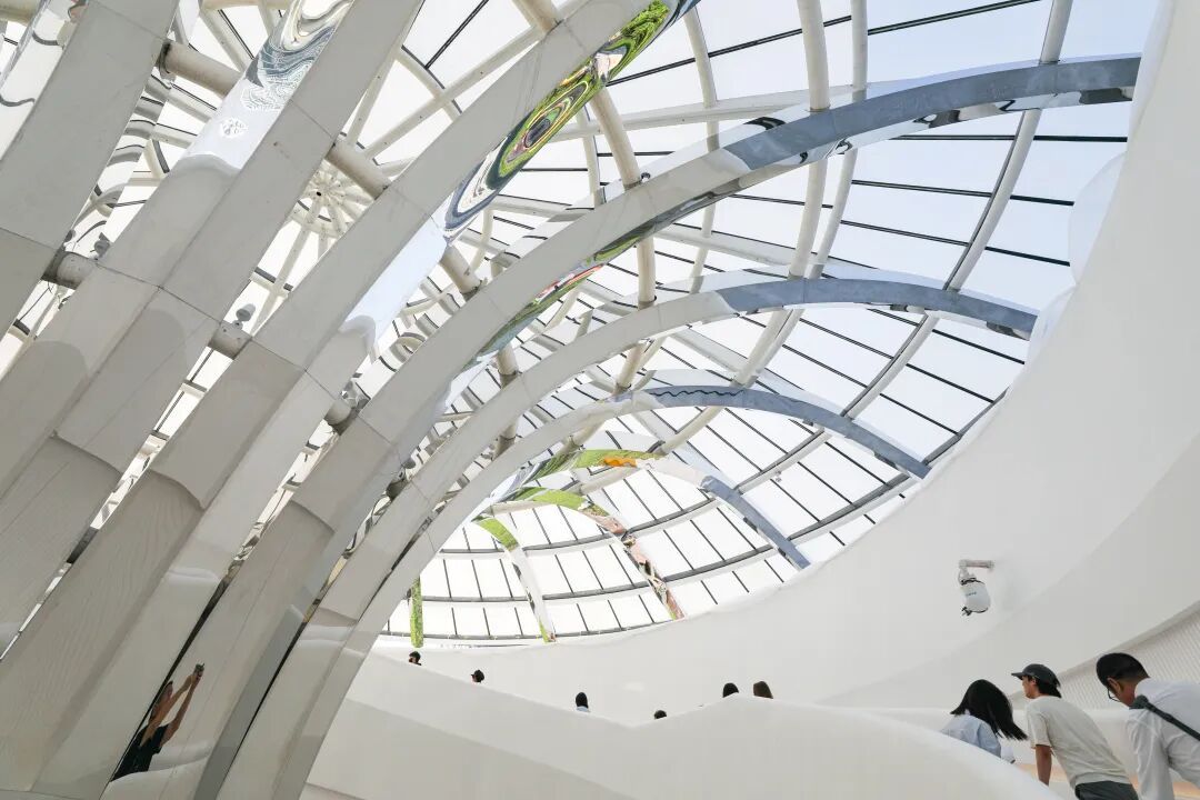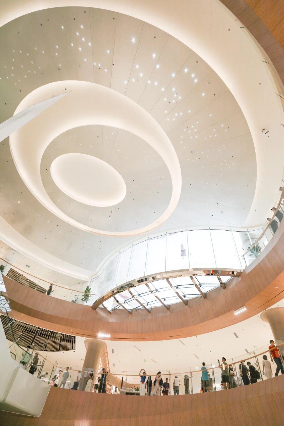 室内空间游览路径借鉴古代文人雅集“曲水流觞”的意境,形态各异的楼梯与坡道被赋予浪漫寓意。