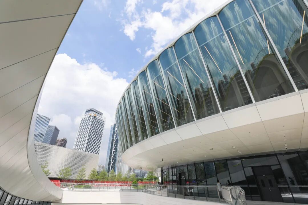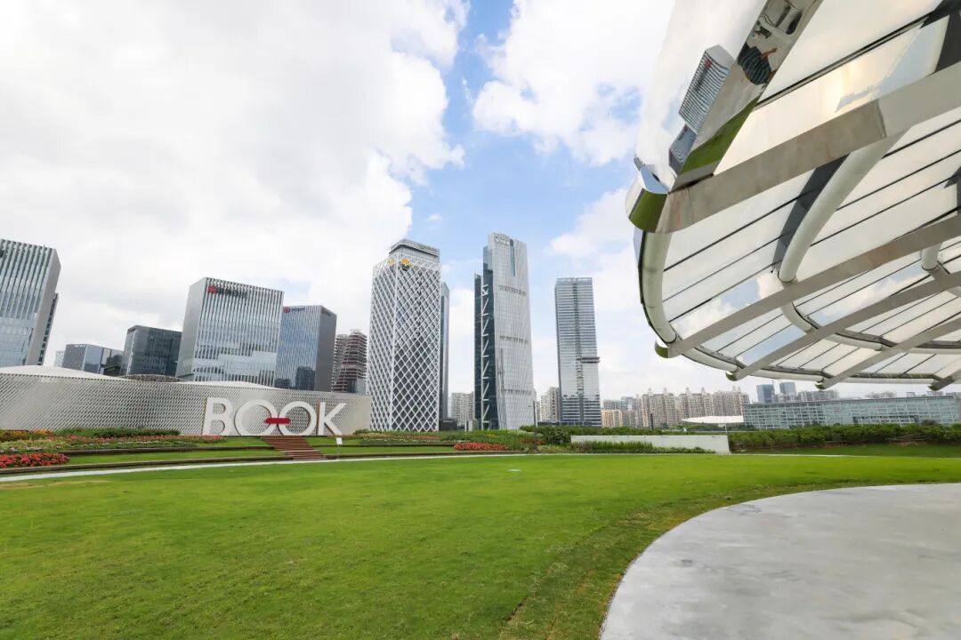 据官方资料,湾区之眼的设计理念源于“天圆地方”,湾区书城与民俗馆的主体呈两个圆形矗立其上,仿佛两个温润的玉盘,与轴线对面的两个方形建筑(宝安图书馆、宝安青少年宫)相呼应。