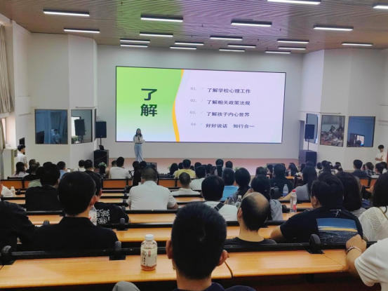 两位老师均以“了解学校心理工作——了解相关政策法规——了解孩子内心世界——实现知行合一”为主线,系统介绍了学校“纺心驿站”心理服务体系的建设情况。她们结合《中华人民共和国家庭教育促进法》和《广州市中小学生心理健康促进条例》等政策法规,进一步强调家庭教育已从“家事”上升为“国事”,并指出父母在未成年人心理健康建设中有着不可替代的重要责任。